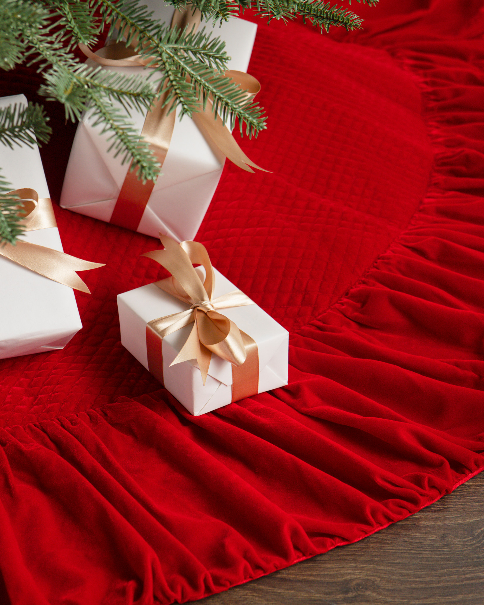 Pleated Velvet Artificial Christmas Tree Skirt Balsam Hill